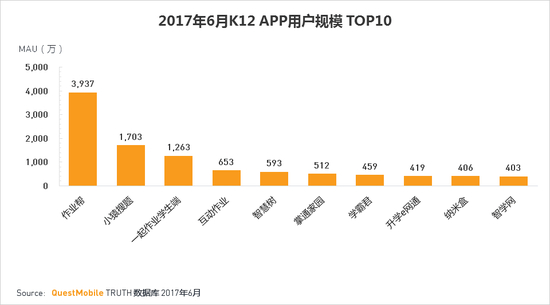 ·作业帮用户规模继续领跑,排名第一。