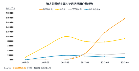 ·五月初,快乐大本营将欢乐狼人杀游戏搬上综艺舞台后,用户反响热烈,平台用户量呈直线上升趋势。