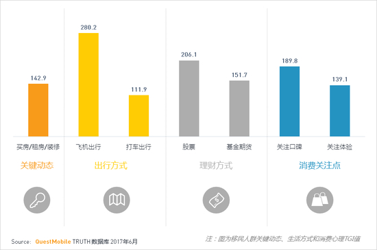 移民人群通常会表现出置业装修的需求,出行也倾向选择飞机;在理财方式上,比起相对稳健的基金,会更多选择风险和回报都更高的股票;而在消费时,移民人群非常注重品牌的口碑,此外体验是否良好也是影响消费决策的主要因素。