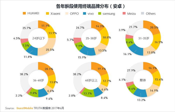 3.各年龄段移动安卓终端品牌月活份额