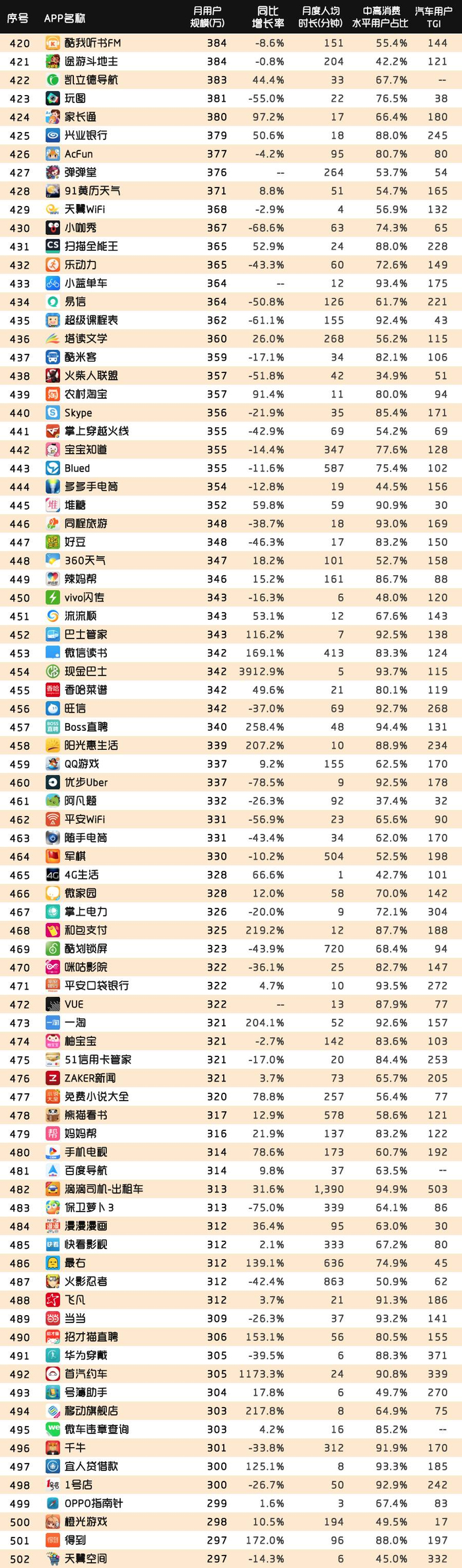 Mr.QM批注:有关中国移动互联网江湖,看看这个榜单就够了。