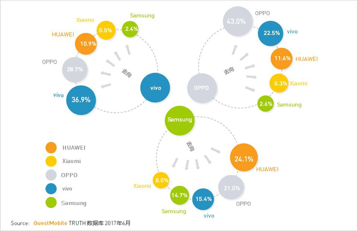 5. 热门安卓手机换机用户去向