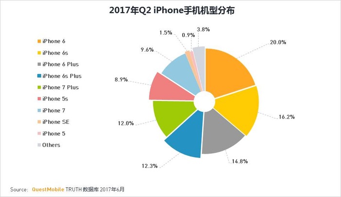 iPhone6及6S占比依然最高,近40%。土豪iPhone7及7P目前占比超过20%,较2017年Q1占比提升4%。