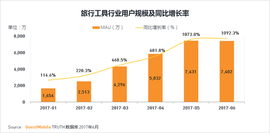·旅行工具包括指南针,共享单车等相关应用,因为共享单车的爆发而快速增长,2017年6月行业总用户已超过7000万。