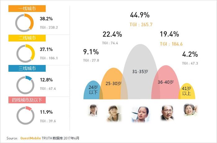·城市等级分布:城市等级分布与移动用户整体分布基本一致,二线城市用户占比最高。