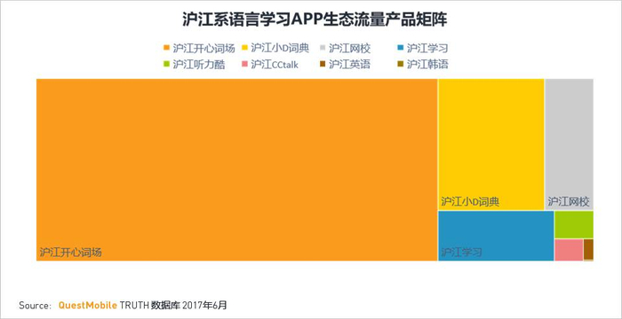 用户的语言学习是多维度的,拥有更丰富的产品矩阵会占据流量入口,例如沪江的APP相关产品也是标杆,其生态流量商业化值得期待。