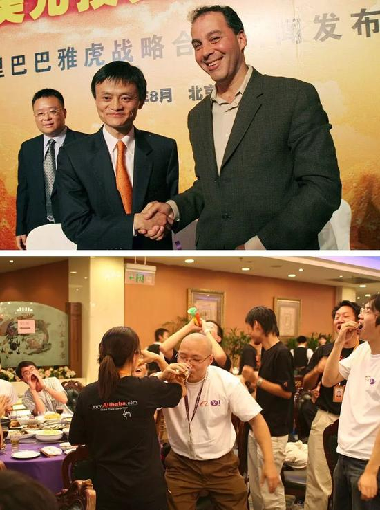 下图:雅虎中国与阿里巴巴同事在宴会上喝交杯酒。