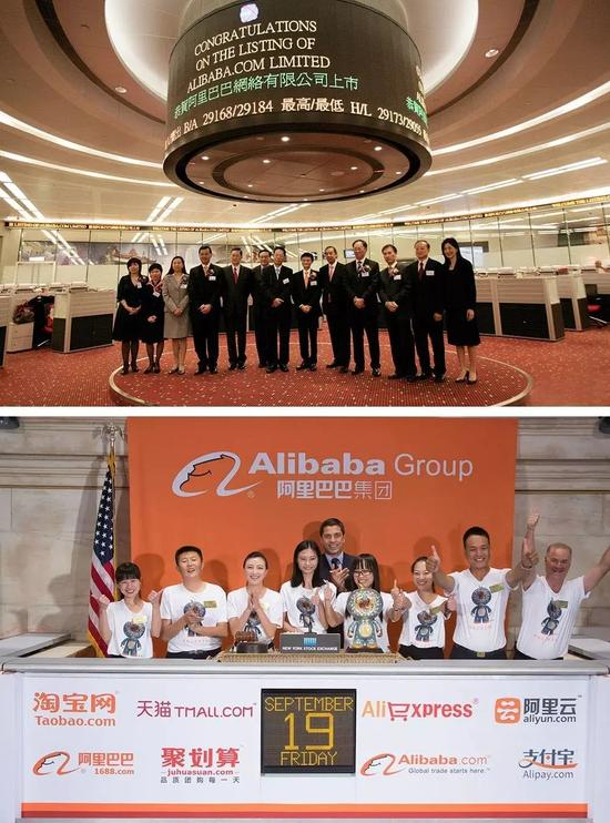 上图:2007年,阿里巴巴B2B业务在香港上市。