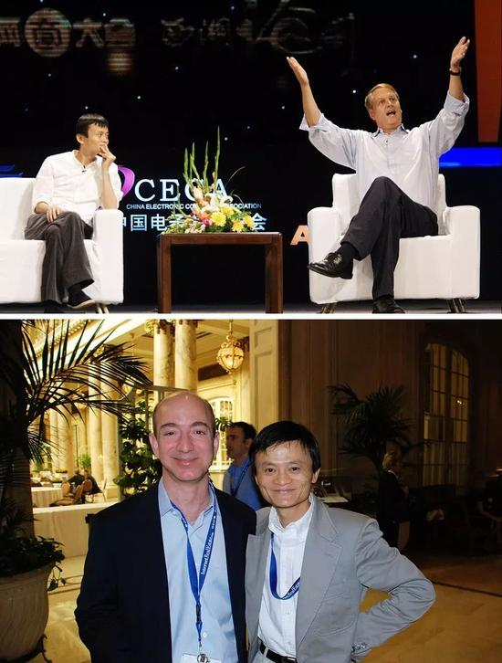 下图:2006年,旧金山,第三届国际web2.0大会,马云与亚马逊CEO杰夫·贝佐斯。