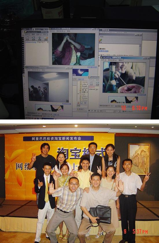上图:2003年5月,非典期间,阿里员工在隔离中用电脑视频见证了淘宝网网页的发布。