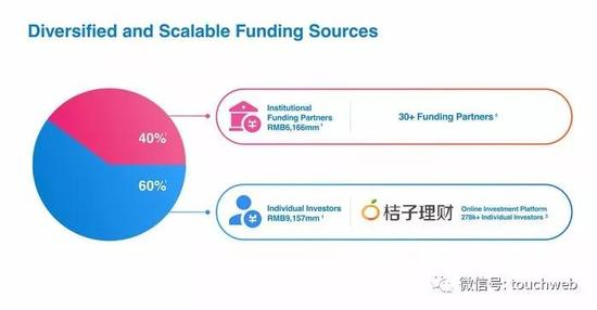 乐信借贷主要资金来源来自桔子理财,占到总额的60%。40%资金来自30多家合作伙伴。