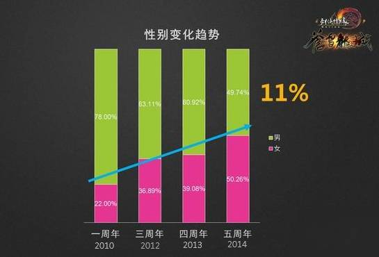 2009年8月28日,《剑网3》正式公测,但在最初的几年却一度徘徊在生死边缘,直到对外观和同人额外感兴趣的女性玩家,逐渐成为了《剑网3》内占据份额最多的玩家群体,《剑网3》才迎来了游戏的巅峰。
