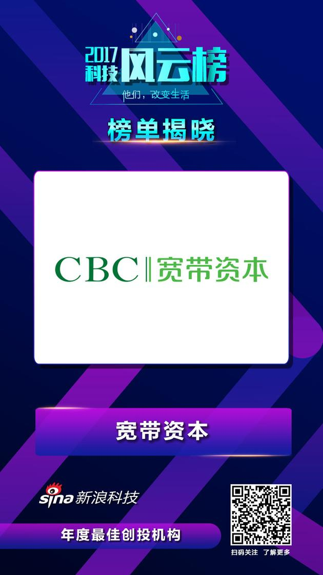 新浪科技讯 1月22日下午消息,由新浪主办的“2017科技风云榜颁奖盛典”今日举行,盛典以“他们,改变生活”为主题,与众多行业领袖、业内大佬共话科技时代。其中,获得2017科技风云榜——年度最佳创投机构的机构是宽带资本。