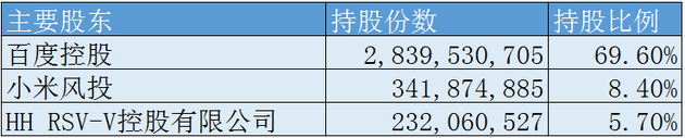 - 百度控股持股2,839,530,705份,占比69.6%;