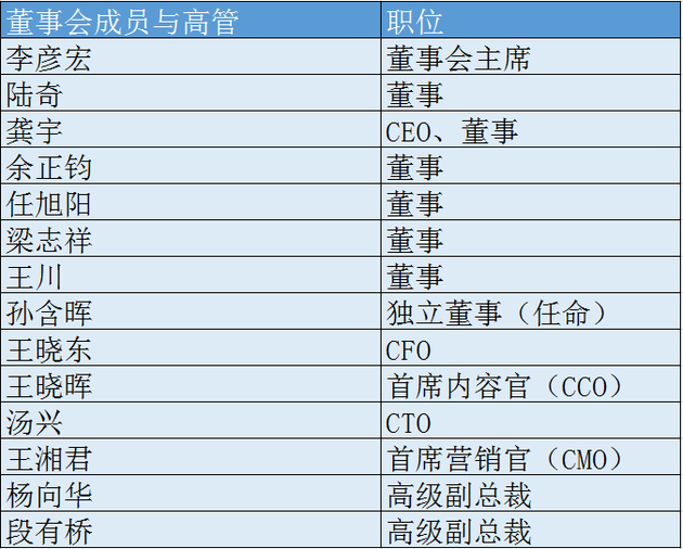 董事会成员与高管详细列表见下图: