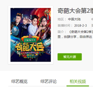 《奇葩大会》第二季于2018年2月3日在爱奇艺上线,每周六晚8点更新,第二季尚未播放完毕。目前,在爱奇艺上搜索“奇葩大会”相关视频,仅有第一季正片以及第二季相关花絮节目,其中第二季花絮部分视频也无法打开。(宵寒)