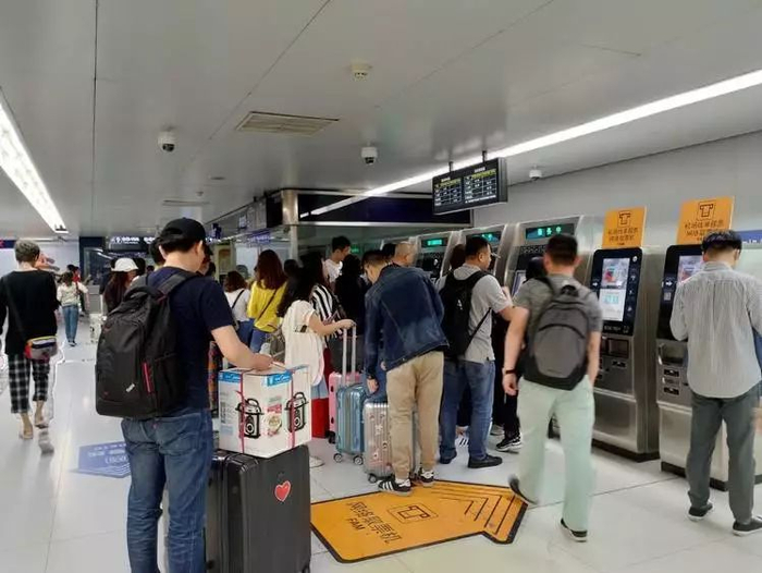 在体验二维码乘车的过程中,我发现无论是 NFC 还是二维码,都是很小众的用户在用,现场刷卡最多的还是实体公交卡。在机场快轨闸机附近,依然有大量的人在人工和自助窗口排队买票,而机场快轨线已经开通二维码乘车半年之久了。