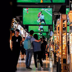 2018年6月17日,辽宁沈阳一家商场内正在直播世界杯赛事。图/视觉中国