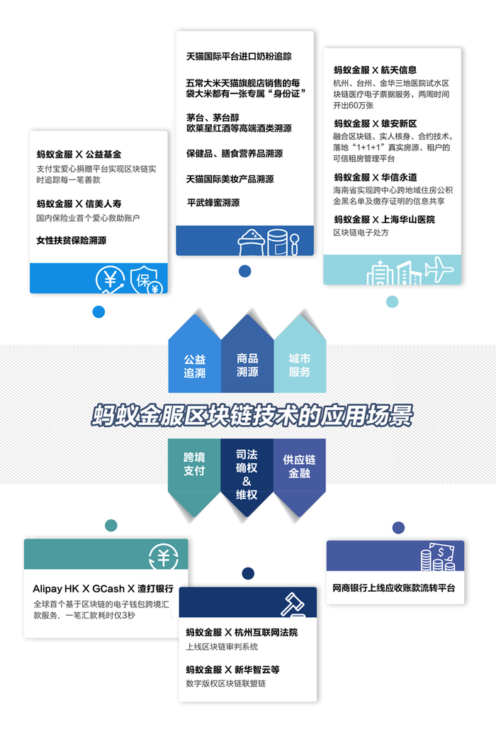 杭州互联网法院的技术合作方是蚂蚁金服,蚂蚁区块链突破了视频等大文件存储、以及保护隐私的同时保证性能的技术挑战,同时,这也是其首次应用跨链技术,多个涉及确权、维权的联盟链都将陆续接入互联网法院的司法链,形成一个丰富的链上生态。除用于存证,蚂蚁区块链已在公益溯源、商品正品溯源、跨境支付、房屋租赁溯源、电子票据溯源、供应链金融、数字版权等领域实现落地。