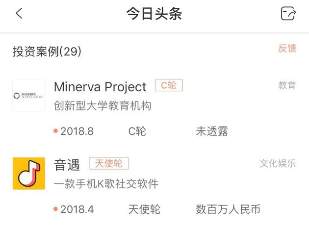 据IT桔子显示,音遇App是一款手机K歌社交软件,已于2018年4月完成由今日头条投资的数百万元天使轮融资。其公司全称北京三个逗号科技有限公司,成立于2017年11月。