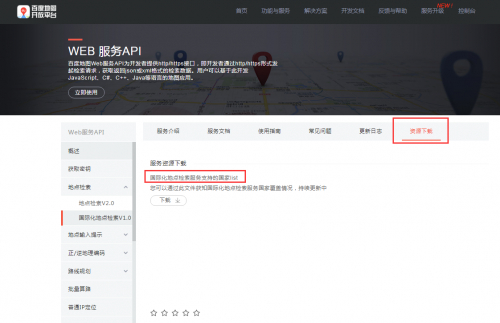 据了解,这个问题是由一位网友发现,在社交媒体中曝光后引发关注。财经网按照网友提供的路径操作,在百度地图开放平台中找到了“国际化地点检索V1.0”,其“资源下载”一栏中财经网看到,百度地图WEB服务写明此为“国际化地点检索服务支持的国家list”,并表示可通过文件获知国际化地点检索服务国家覆盖情况。