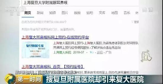 2018年9月,安徽的一对夫妇带着孩子来上海求医,他们原本要前往复旦大学附属医院,但他们用百度搜索“复旦大学附属医院”时,跳出来的却是一家“复大医院”,他们以为这就是复旦大学附属医院。在百度的引导下,他们来到复大医院就诊,结果孩子被诊断出“血管瘤”,花了15000多元打了所谓“进口的针”。事后证明,这家所谓的“复大医院”是一家莆田系医院,和复旦大学附属医院毫无关系。百度之所以在搜索复旦大学附属医院时,强行推销山寨版的“复大医院”,是因为它们收了推广费;