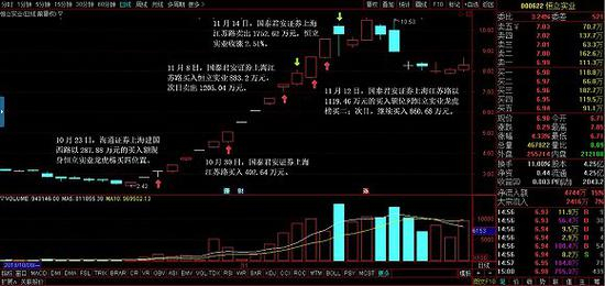 10月23日,章建平旗下的海通证券上海建国西路便以287.88万元的买入额占据恒立实业当日龙虎榜买四的位置,此后亦曾多次上榜,直至11月14日,国泰君安证券上海江苏路卖出1752.62万元,恒立实业二次开板,收涨2.51%,而此时其股价距离本轮上涨行情的顶部已经不远了。