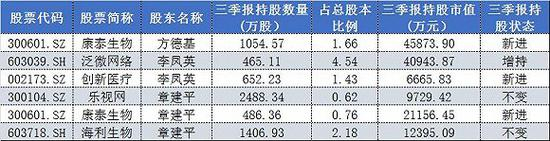 值得注意的是,被章建平看上的还不止海利生物。界面新闻梳理了三季报章建平及其一致行动人现身上市公司前十大股东的情况: