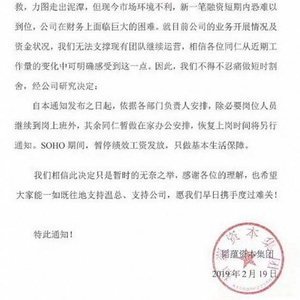 即日起,公司各部门负责人将安排员工在家办公,期间暂停绩效工资发放,只做基本生活保障,恢复上岗时间将另行通知。