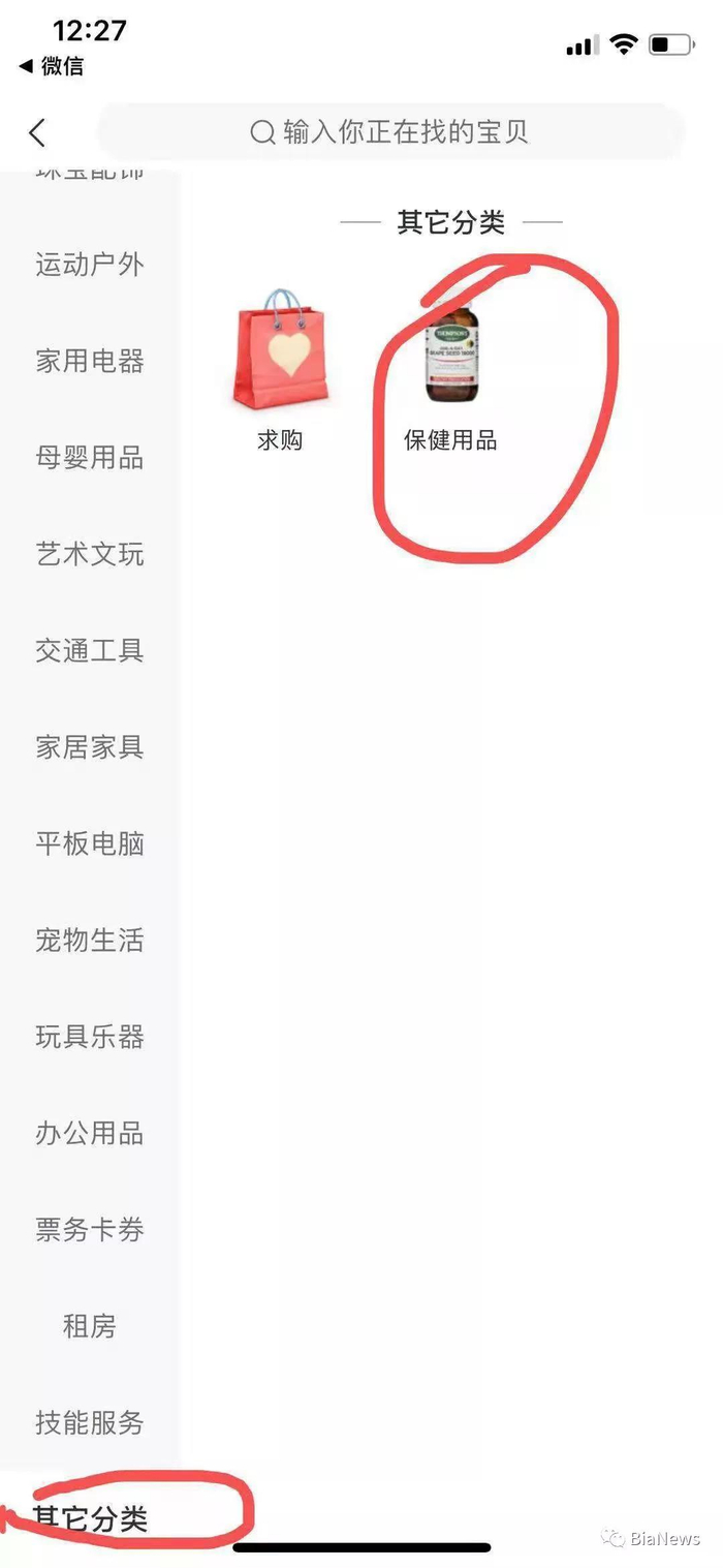 打开转转首页的商品分类中其他商品-保健用品类目下,会出现各种违禁商品的推荐。
