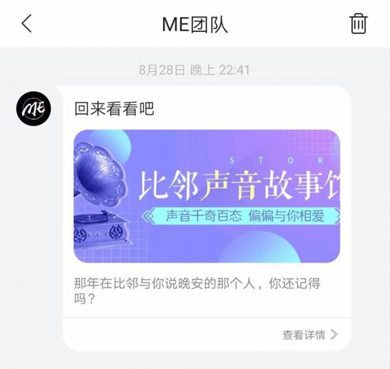 目前用户只能用手机号登陆ME,但其在比邻的用户信息和好友已经完成了迁移,登陆App后,用户收件箱里有一封《ME团队》的来信,名为《回来看看吧》,其中写道:“那年在比邻与你说晚安的那个人,你还记得吗?”