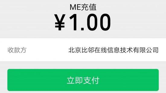 用户在ME中付费购买增值服务时,第三方支付信息显示,费用也是流向了北京比邻在线信息技术有限公司,这家公司已经更名为广州比邻在线信息技术有限公司,也就是比邻App的运营方。