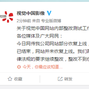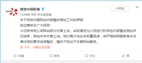 关于视觉中国网站内部整改测试工作的声明