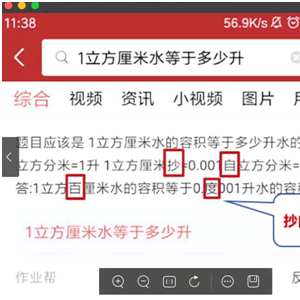 百度还举例称,在今日头条搜索“1立方厘米水等于多少升”,首条搜索结果中,嵌入了“抄自百度”的字眼,这也被看做是头条“盗窃”行为直接曝光的证据。不过,全天候科技今日再搜索的时候,已经搜不到类似内容。