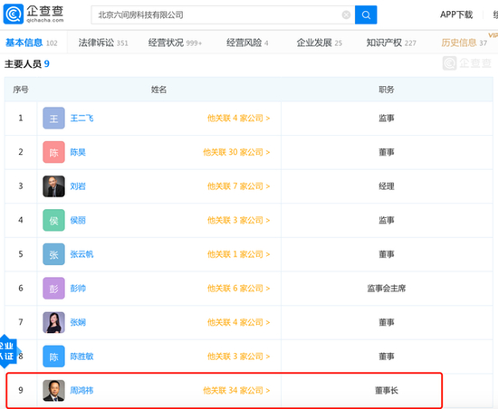 新浪科技讯 5月5日下午消息,企查查数据显示,近日,刘岩卸任北京六间房科技有限公司董事长职位,新任董事长为周鸿祎,疑似实际控制人仍为黄巧灵,持股比例16.1%。