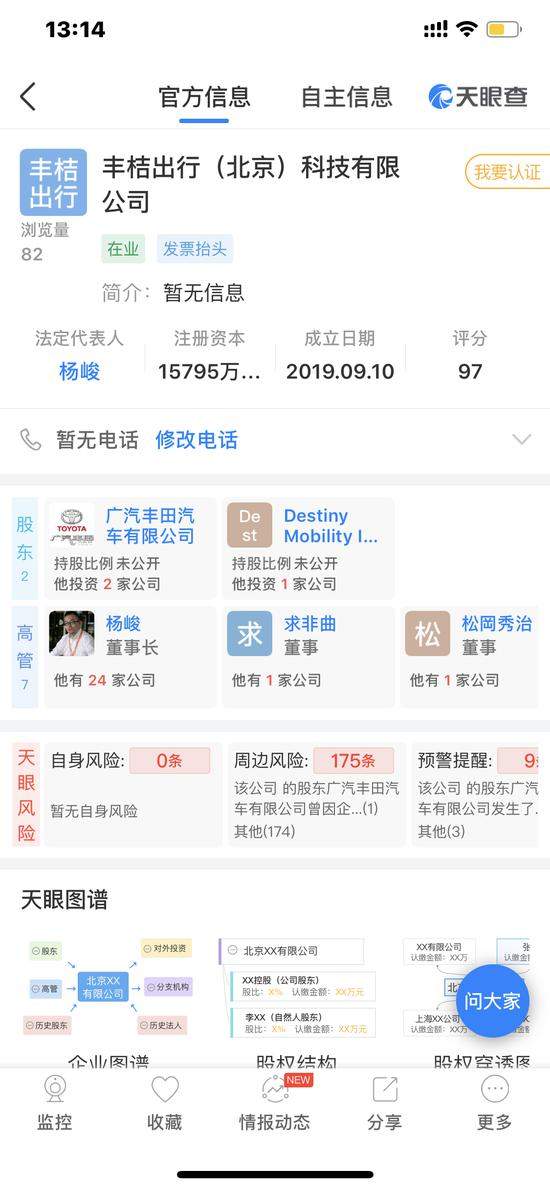 天眼查显示,9月10日,滴滴与丰田共同出资的合资公司丰桔出行(北京)科技有限公司正式成立,注册资本1.5795亿美元,滴滴出行副总裁杨峻担任董事长和法定代表人。公司经营范围包括汽车租赁、销售汽车、汽车零配件、网络预约出租汽车经营等。(张俊)