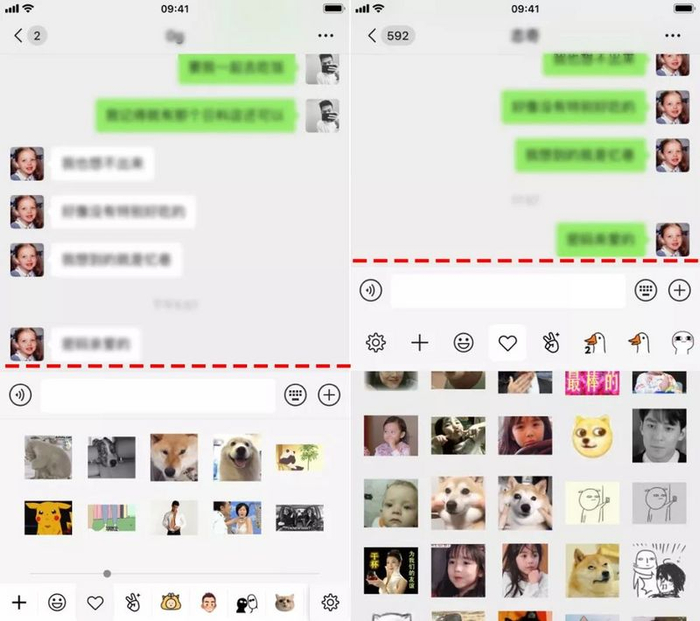 ▲ 表情包选择栏对比。 左为 7.0.5,右为 7.0.7