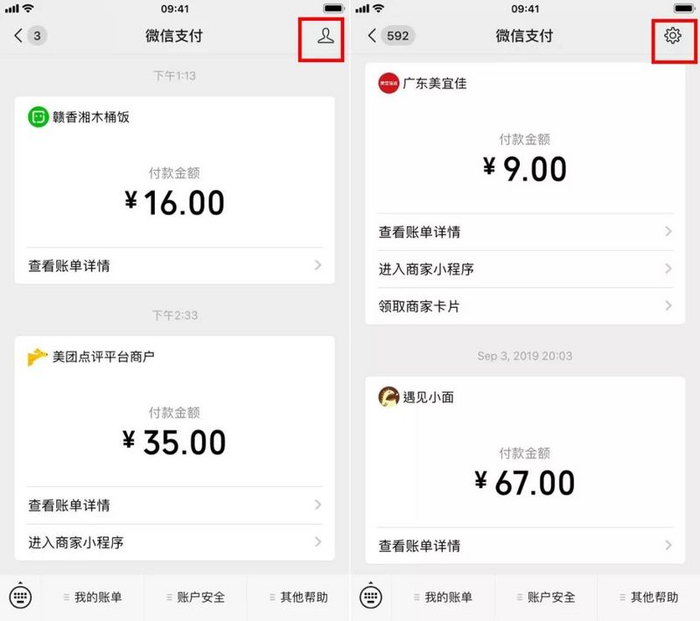 微信支付通知页面右上角原先的“…”变为了代表“设置”的齿轮符号。
