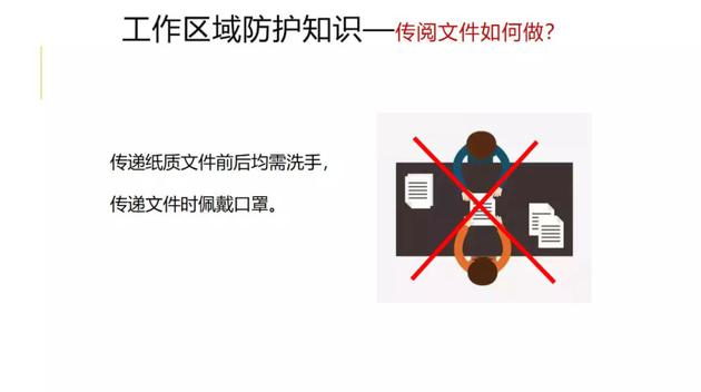 保持办公区环境清洁,建议每日通风3次,每次20-30分钟,通风时注意保暖。人与人之间保持1米以上距离,多人办公时佩戴口罩。保持勤洗手、多饮水,坚持在进食前、如厕后按照六步法严格洗手。接待外来人员双方佩戴口罩。