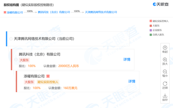 天眼查股权结构显示,腾讯科技(北京)有限公司对该公司全资持股。据悉,前者为腾讯地图的运营主体。