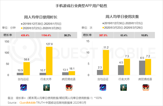 4.2 宅家用户的休闲娱乐需求明显提升,卡牌类游戏剑与远征在朋友圈信息流等渠道进行多轮推广,春节期间用户达到高峰;休闲益智的行走大师则在3月后脱颖而出
