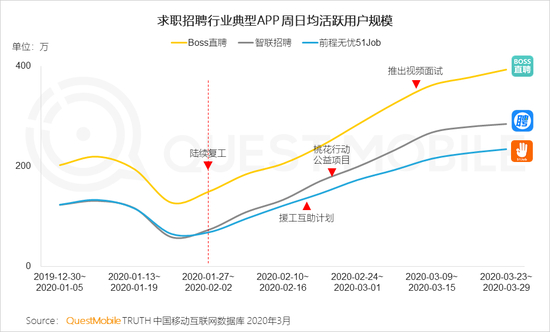 5.2 在求职招聘行业中,企业均上线视频远程面试功能,并纷纷推出援工互助计划和公益行动,帮助企业复工复产,用户规模实现快速回升
