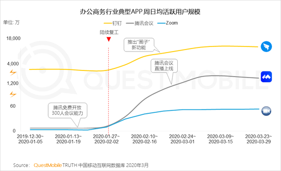 3.3 直播上课/会议、在线点名等功能加载和免费政策,进一步降低使用门槛,钉钉、腾讯会议用户粘性增长明显