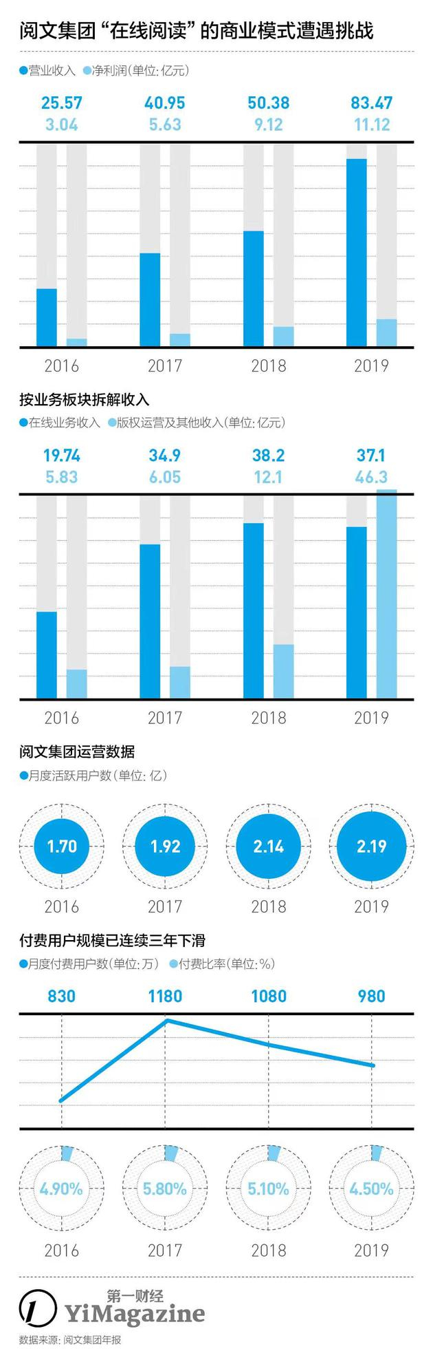 直到2017年阅文集团在港交所主板挂牌上市之时,这套“付费阅读+版权售卖”的商业模式似乎仍是被验证有效的。阅文2017年年报显示,期内公司平均月度付费用户达到1110万,同比增长33%。