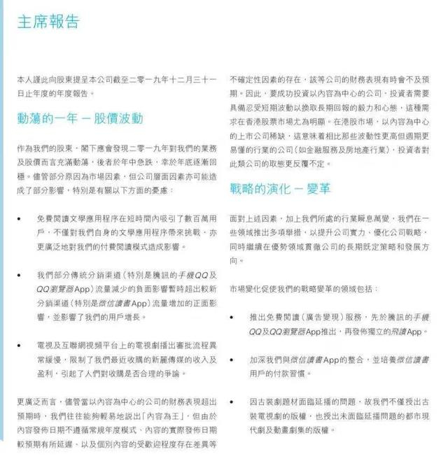 这篇“主席报告”的行文风格,在上市公司的官方财报撰写文案中实属罕见。某种意义上,它也是吴文辉五年来执掌阅文的“总结陈词”,但是字里行间透出的遗憾和不完美,远大于里程碑式的功绩。