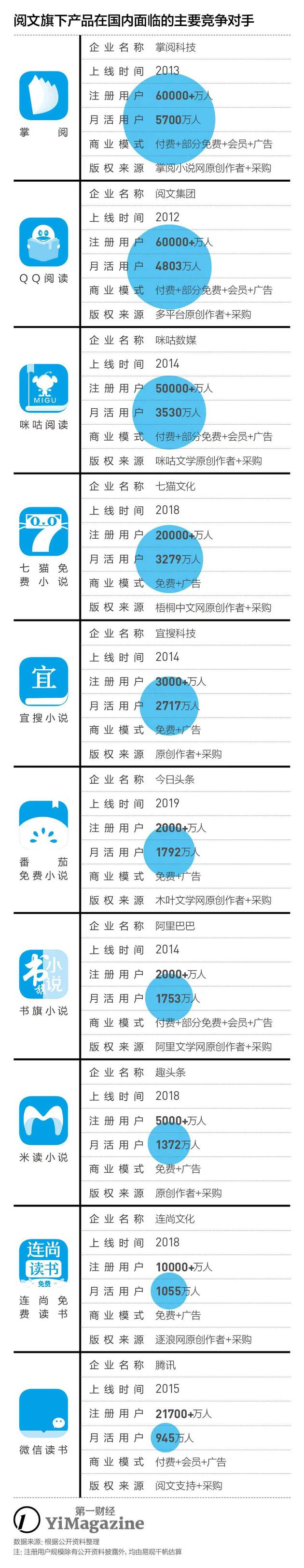 事实上,阅文也尝试了打开免费窗口。2019年一季度,阅文开始在手机QQ及QQ浏览器App上分发部分免费内容,3月时正式上线了飞读免费小说,这是一个专门的免费阅读应用。但前述阅文内部人士告诉《第一财经》YiMagazine,腾讯”对这款防御性产品的表现并不满意”。