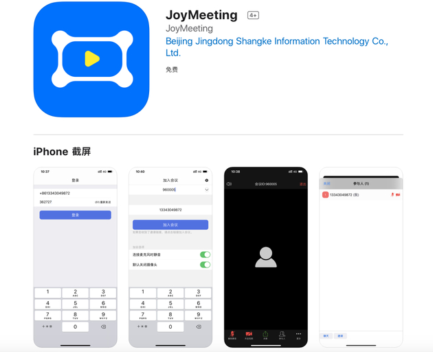 根据苹果应用商店中「JoyMeeting」的介绍显示,其开发者为北京京东尚科信息技术科技有限公司,据天眼查显示,该公司的高管辛波为京东团队创始人之一。