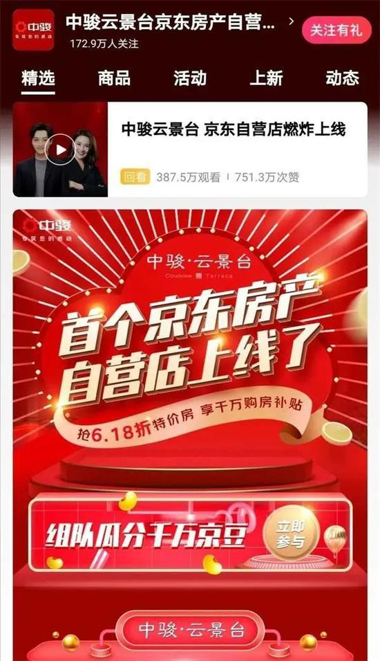 而中骏云景台京东房产自营旗舰店开店首日粉丝就超过170万。