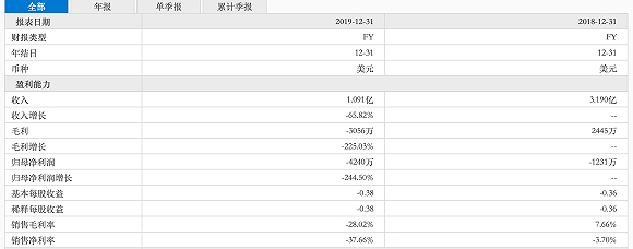根据招股书,亿邦国际在2019年的收入为1.091亿美元,相比2018年全年3.19亿美元同比下滑了65.83%。
