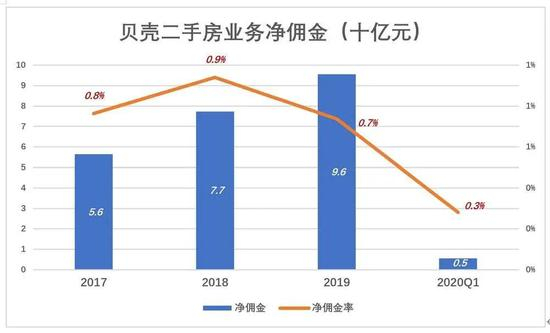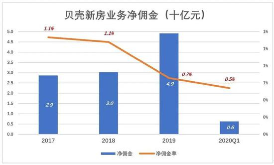 类似地,2019年新房业务净佣金率也是0.7%,实收49.2亿,相当于二手户业务净佣金收入的51.5%。